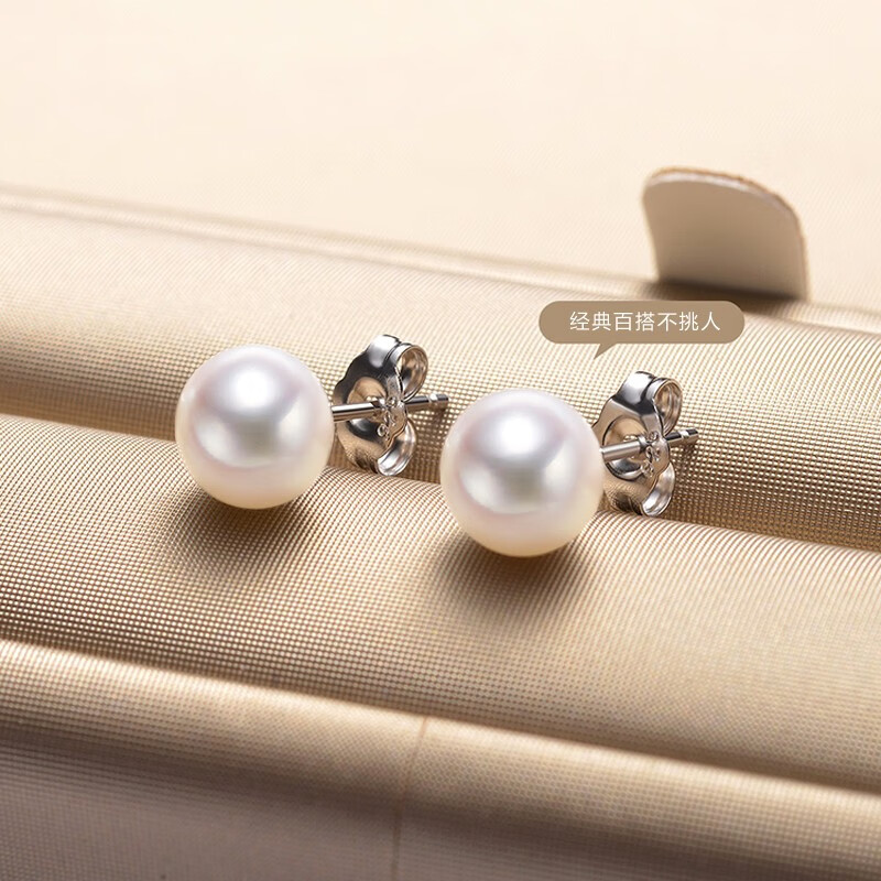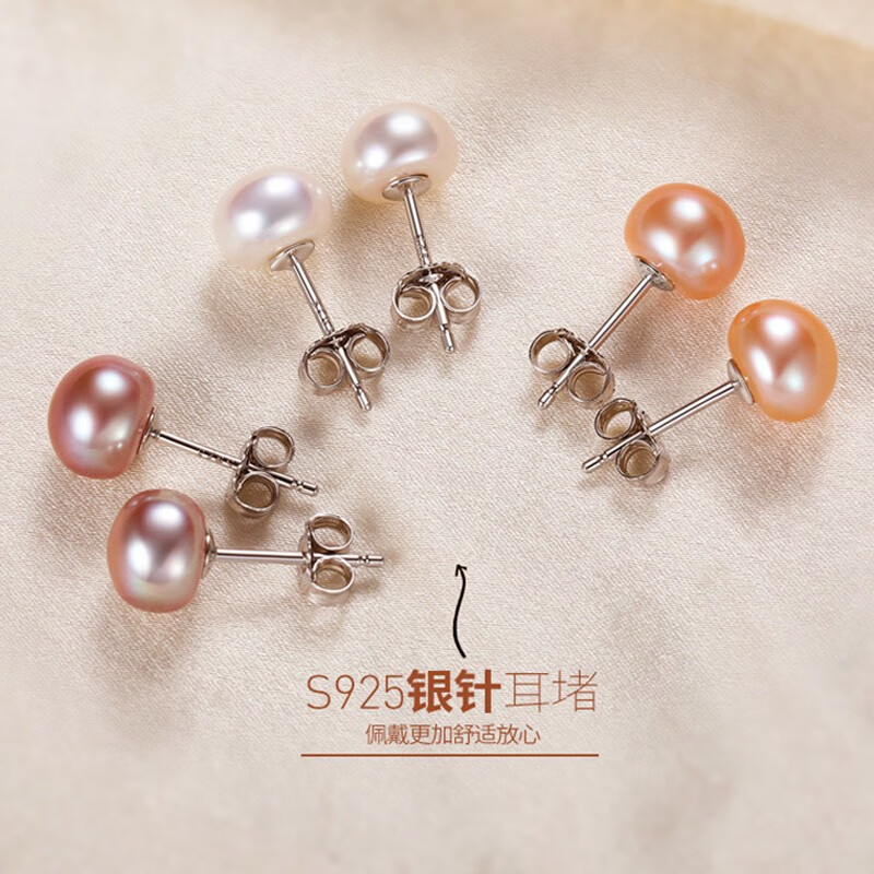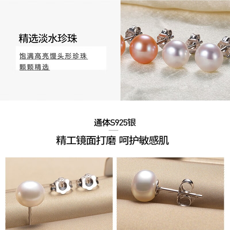 淡水珍珠耳钉 纯银耳针耳堵不过敏 馒头形