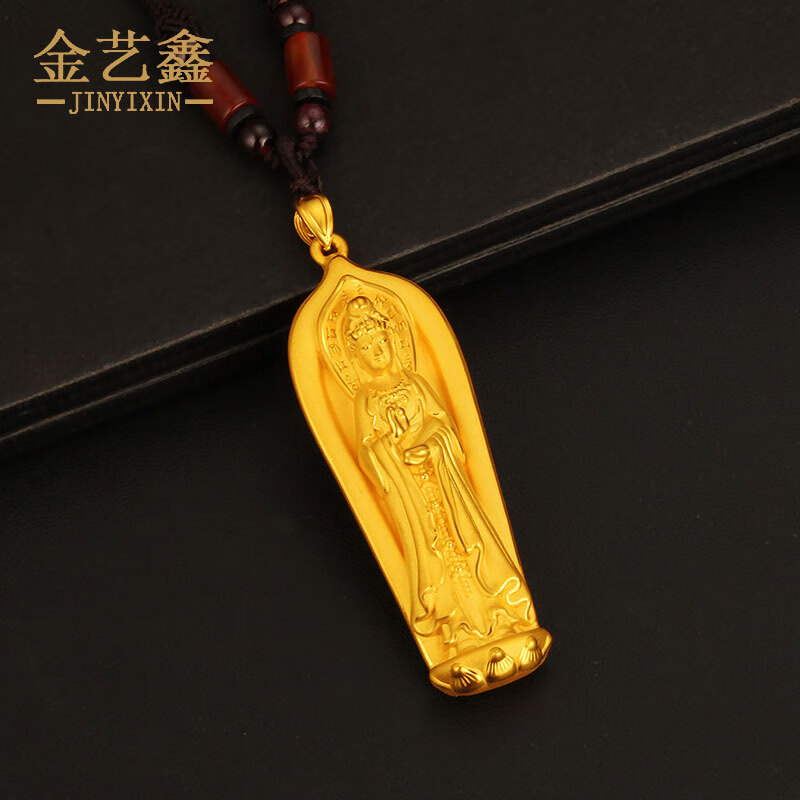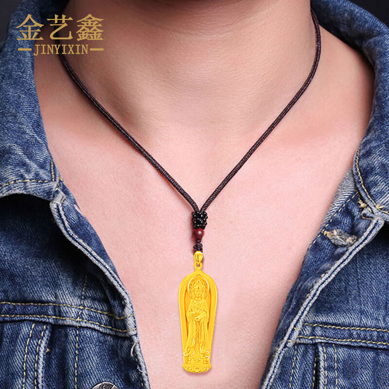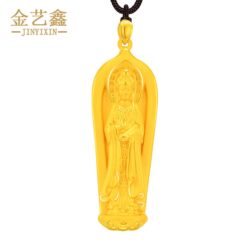 黄金观音吊坠男款999足金项链3D硬金菩萨坠子金观音足金饰品 重约9.1克