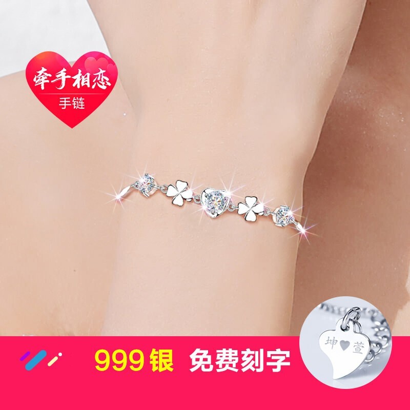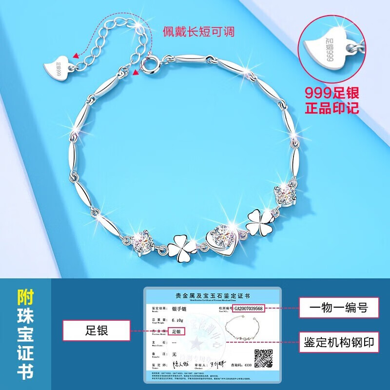 四叶草999足银手链女时尚饰品七夕情人节礼物纪念日送老婆高级感