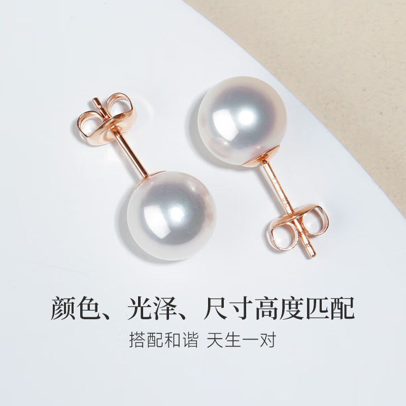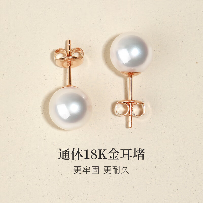 珠宝特选级Akoya天然海水珍珠耳钉18K金小灯泡耳饰生日礼物送女友